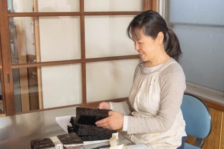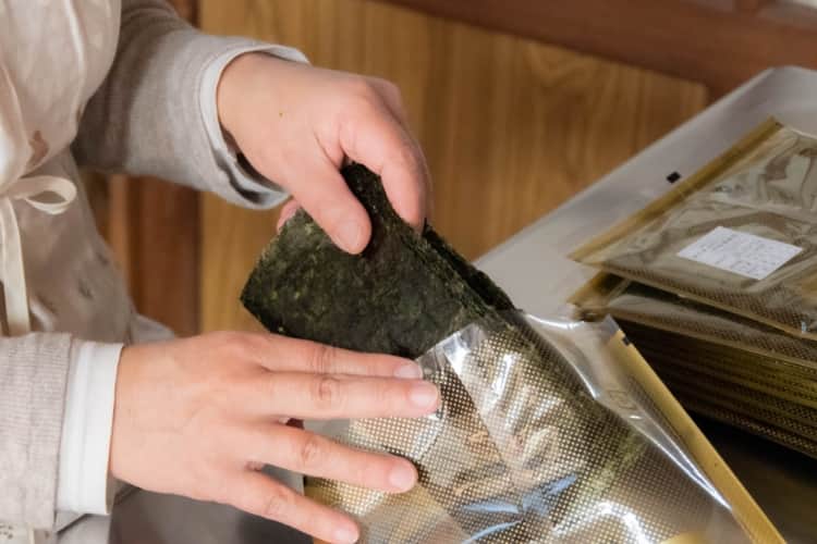 白井海苔店では、店内で海苔を焼いています。お店に入ると、海苔の香りがふわ〜〜!っと感じられますよ。